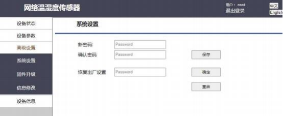 用户在系统设置界面可以更改 Web 登陆账号密码 ,以及对设备进行出厂恢复操作,出厂恢复设置密码与 Web 登陆密码一致。