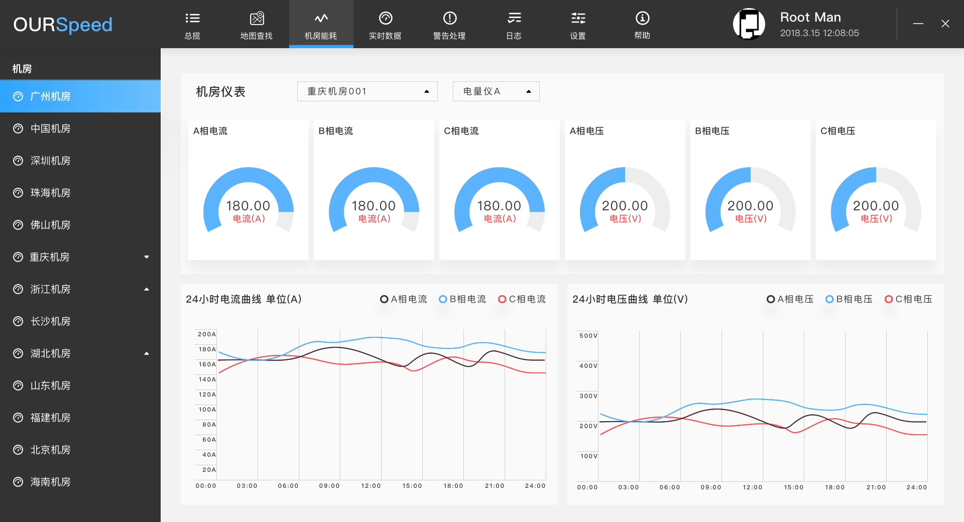 管理层:针对系统的管理人员,是系统的最上层部分,主要是系统软件和必要的硬件设备,如工业级计算机工作站、数据库服务器、大屏幕显示设备、UPS 电源、路由器等组成。监测系统软件具有良好的人机交互界面,对采集的现场各类数据信息计算、分析与处理,并以图形、数显、声音等方式反映现场的运行状况。