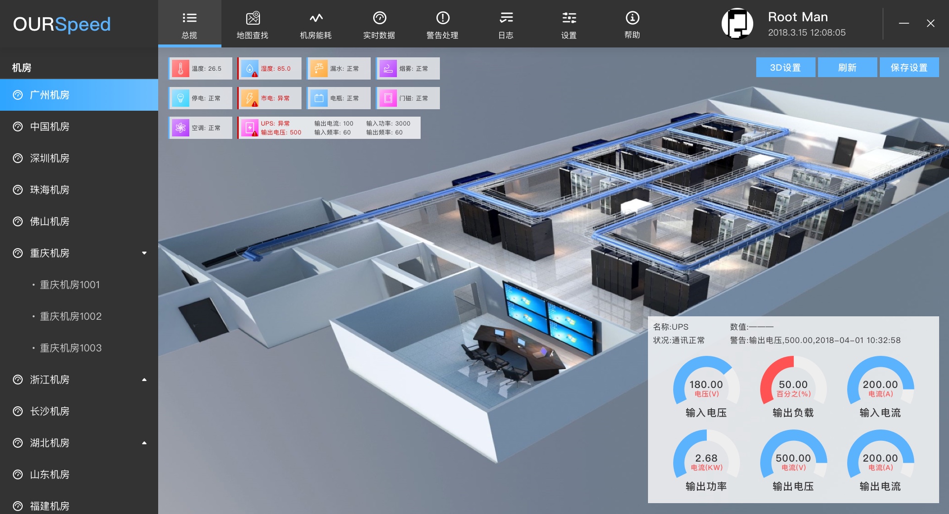 随着科技不断的发展,交互在我们日常生活当中,特别在是一些不便于人力巡检的场所,智能化的科学技术及设备显得更为重要,机房存放着提供一方场所正常运作的计算机、服务器、供配电及信号转换等运行因素,其机房环境的安全性、稳定性、持续性、可拓展性等极其重要。为了实时掌握机房环境各项数据,考以往人力巡检是很难做到做全以上要求,局限性较大,因此一套与时俱进,适合机房的智能化动力环境监控系统由此而生。