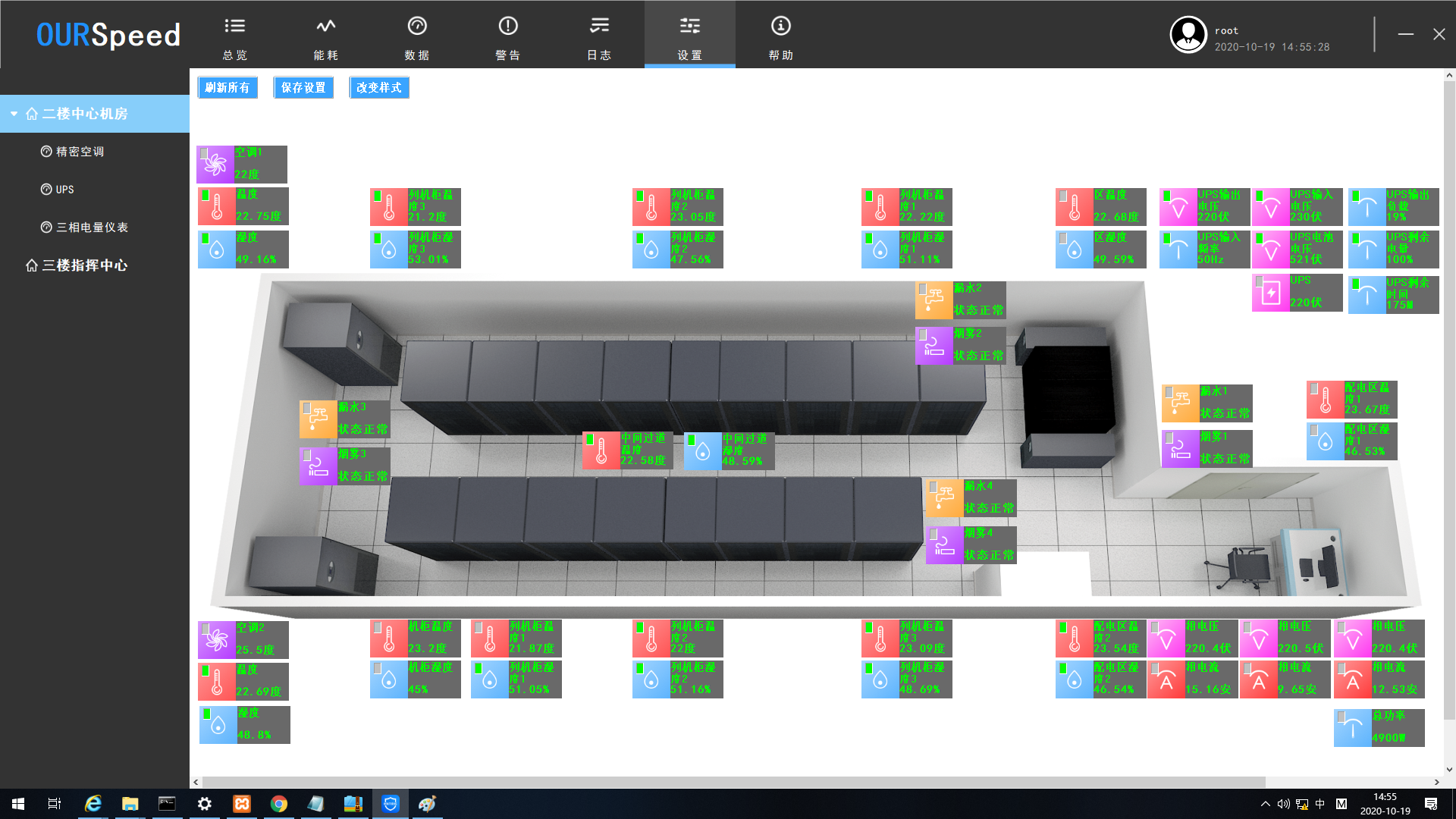 动力环境监控系统的多屏幕展示功能可以将用户关注的某些设备的重要信息页面进行独立展示,支持在单个屏幕上显示多个页面展示窗口或者在多个屏幕上显示一个大窗口,且窗口的大小、窗口显示模式、窗口的内容、屏幕中的显示位置均可以进行自定义设置,展示方式灵活多变、操作简单、独立、快捷。