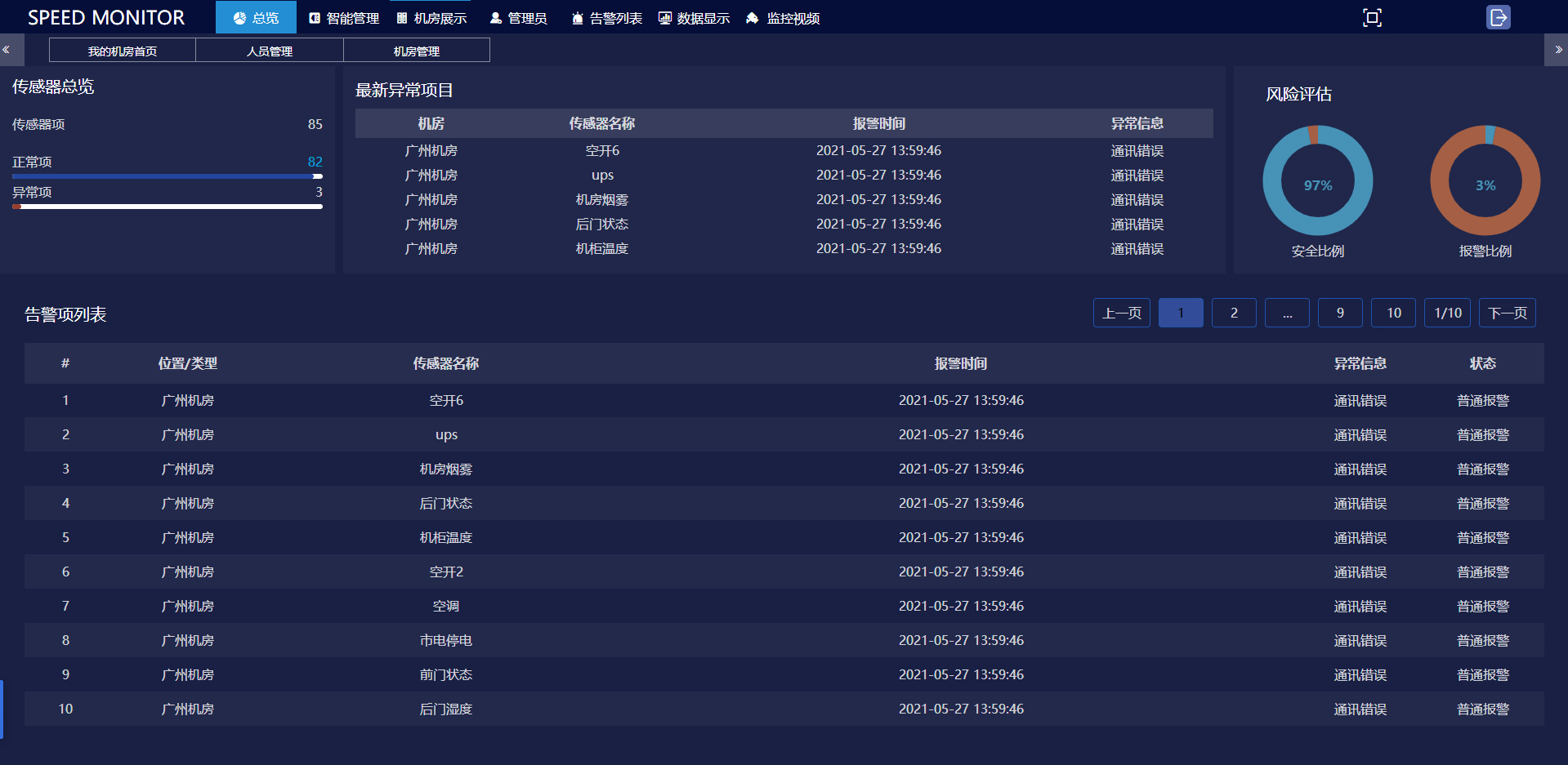 产品适用于政务、军队、税务、铁路、交通、教育、医院、金融、银行、仓库、电力、能源、基站、工厂等场所的机房动力及环境监控;可对温湿度、漏水、红外、气体、蓄电池、空调、消防、门禁、视频、市电;进行24小时实时监控,安全、省力。